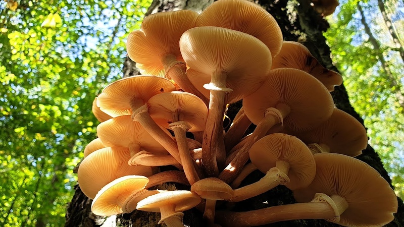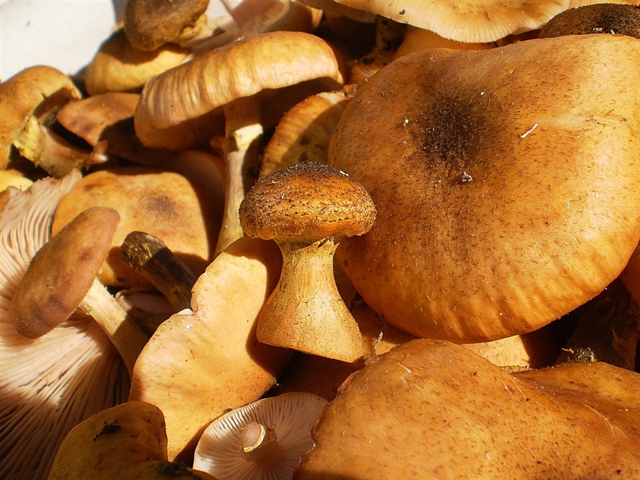 Изменчивость: цвет шляпки у этих сентябрьских грибов изменяется от светло-оранжевого до красновато-коричневого.