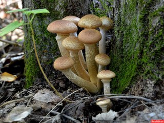 Опята ( Armillariella mellea ), также называемые «шампиньонами», имеют желто-коричневую шляпку от одного до четырех дюймов и стебель с беловатым кольцом непосредственно под шляпкой.По форме и вкусу он похож на многие коммерческие грибы.