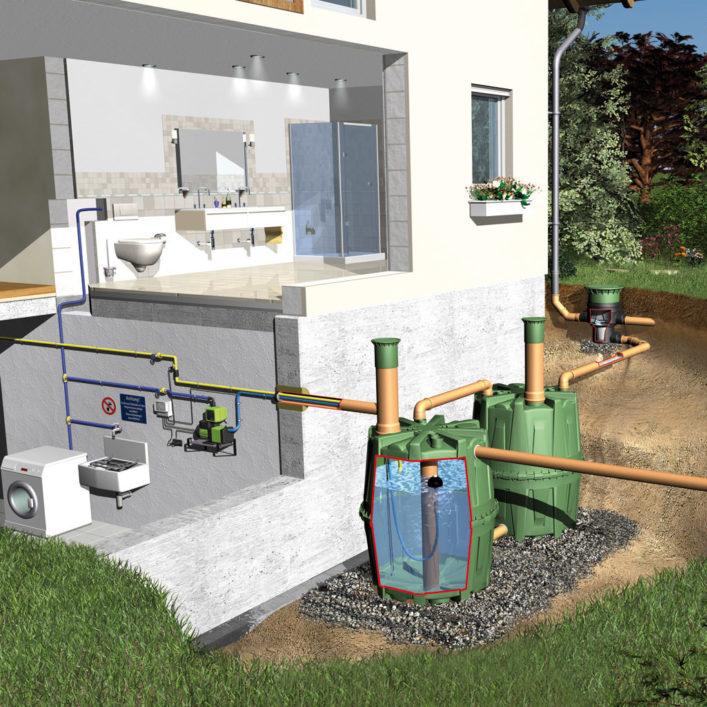 - Поток сточной воды продолжается до тех пор, пока сточная вода не достигнет определенного уровня и не сработает поплавковый датчик.