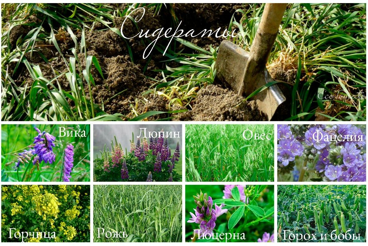 Одними из наиболее распространенных растений, используемых в качестве сидератов, являются вика и овес, которые дают большой процент ботвы. Единственным недостатком вики являются чрезмерно хрупкие стебли, поэтому высаживают ее вместе со злаковыми.