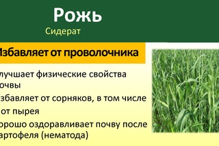 Великолепно как зеленое удобрение Озима Рожь, посеянная рано осенью или в конце лета, успеет прорасти и образовать пышные кусты. Хорошо переносит зиму и ранней весной, продолжает наращивать листовую массу и корни. За две недели до высадки овощей или ягод брошенную зеленую массу необходимо подрезать бляшками и внести рожь в почву.
