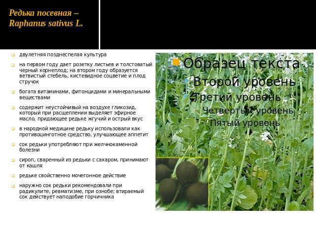 Редька кормовая – однолетнее растение семейства крестоцветных.