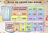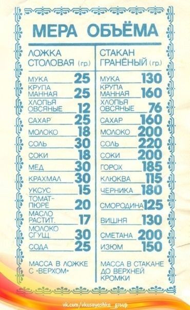 Часто, используя рецепты, приходится придумывать, не только как, например, отмерить 300 грамм муки (сколько это стаканов), но и как отмерить нужное количество других продуктов.