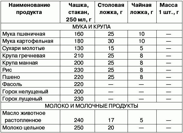 Иногда в рецептах по приготовлению блюд указаны продукты в весовых мерах. Не у всех хозяек под руками есть кухонные весы, а приготовить вкусное блюдо хочется точно по рецепту.