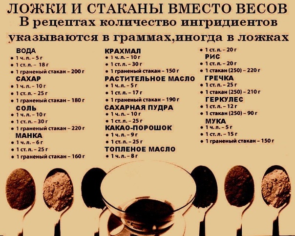 При отсутствии стакана, вес ингредиентов можно вымерять ложками.