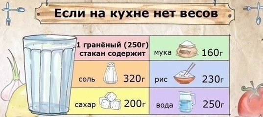 Если в хозяйстве отсутствует стакан, но есть кухонные весы.