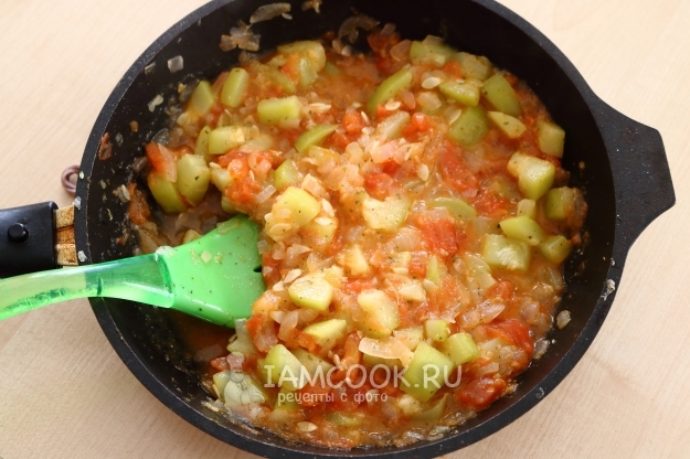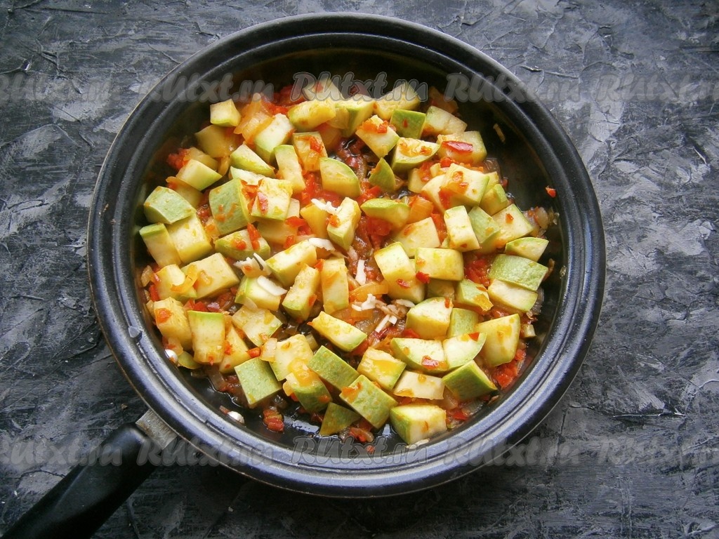 - Добавьте к овощам, находящимся на плите, кабачки.