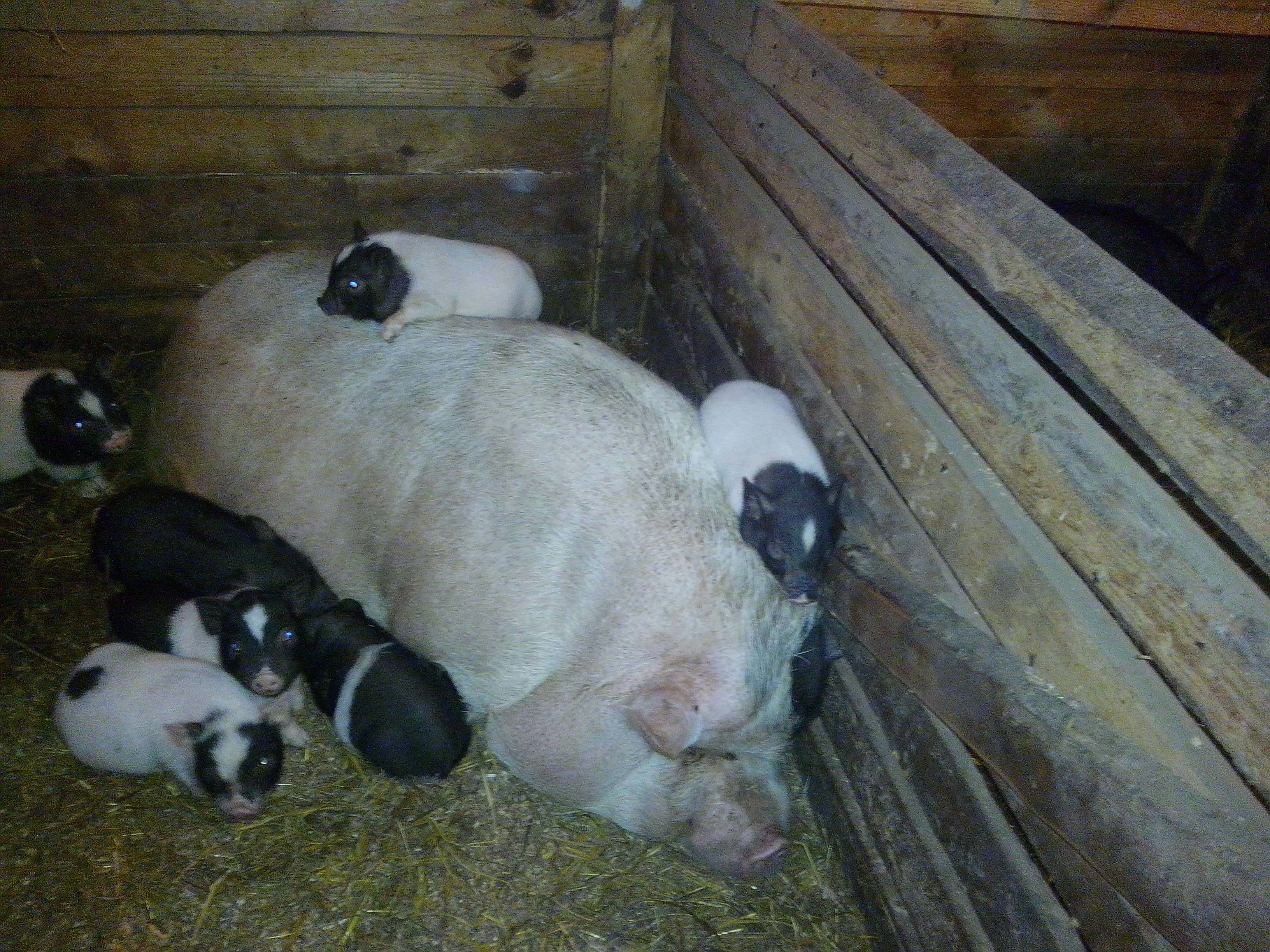 Для поросят идеально подходит свинарник, построенный из кирпича с деревянным полом. Первые несколько дней животных держат с матерью. Обязательно нужно организовывать правильный режим питания. Поросята не должны переедать, а питание должно происходить желательно в одно и то же время. Для предотвращения анемии, свиньям дают препарат Ферроселинит. Поросят от матери отлучают не сразу.