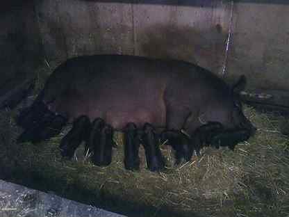 Для половой зрелости свинья должна быть массой не менее 30 кг. Слишком маленькая самка не сможет принести здоровое потомство. Чтобы произошло оплодотворение, самца на день помещают в загон к самке. При первом опоросе самка рожает до 5 поросят. Период беременности длиться до 116 дней. Перед родами самка создает гнездо из сена. В это время следует подстелить новое сено для подстилки и налить чистой воды. После рождения поросят нужно, чтобы в помещении было 30 градусов температуры.