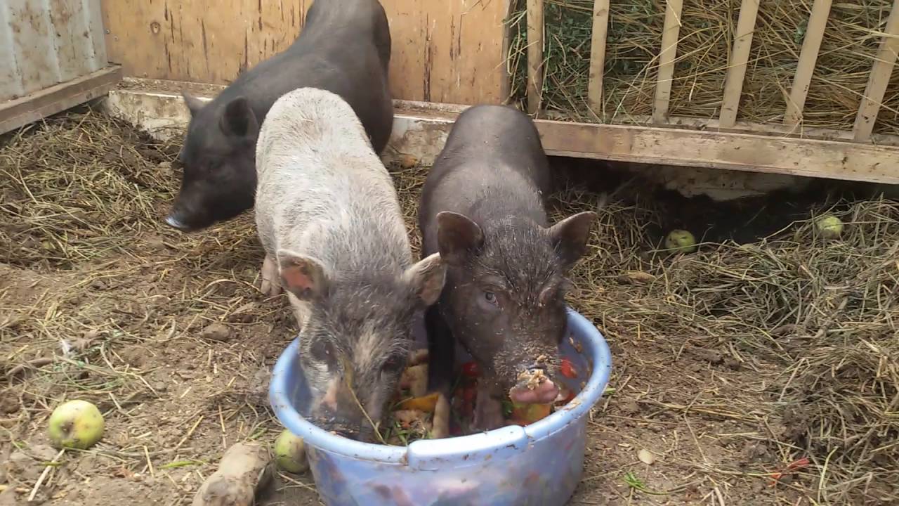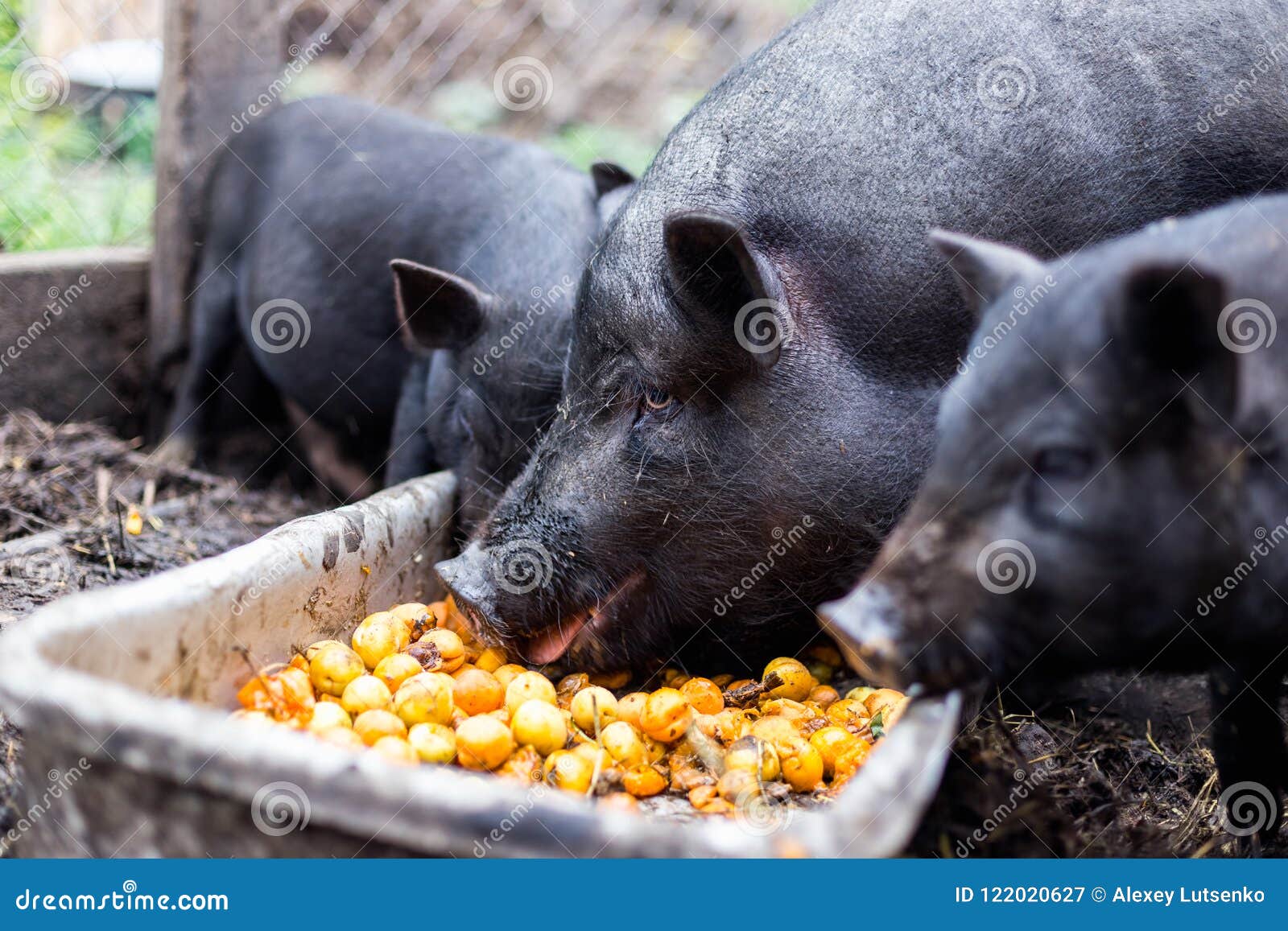 Вьетнамские пузатые свиньи могут есть все, включая обрезки, барахло, гнилую пищу, испорченную пищу, разлагающуюся пищу и разлагающиеся туши.