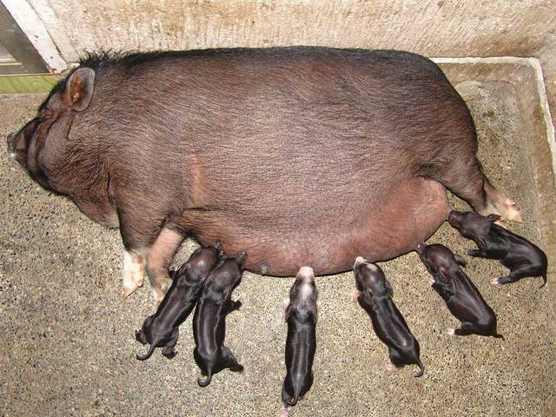 Ожидается, что у вьетнамских брюхоногих свиней при родах будет от 5 до 10 поросят.