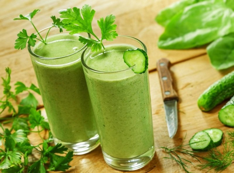 Например, оптимальными будут миксы из огурца, сельдерея и салата.