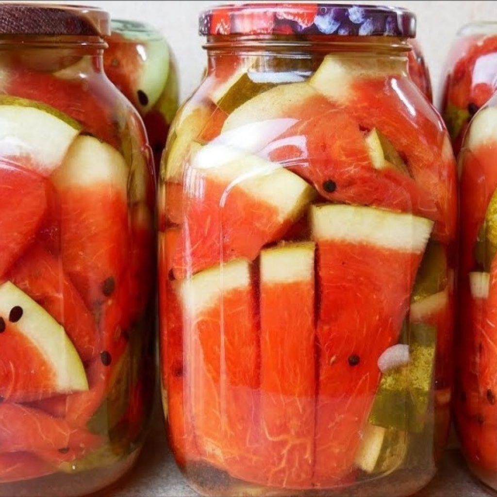 - Арбуз режется на дольки и закладывается в банки, после чего заливается маринадом.