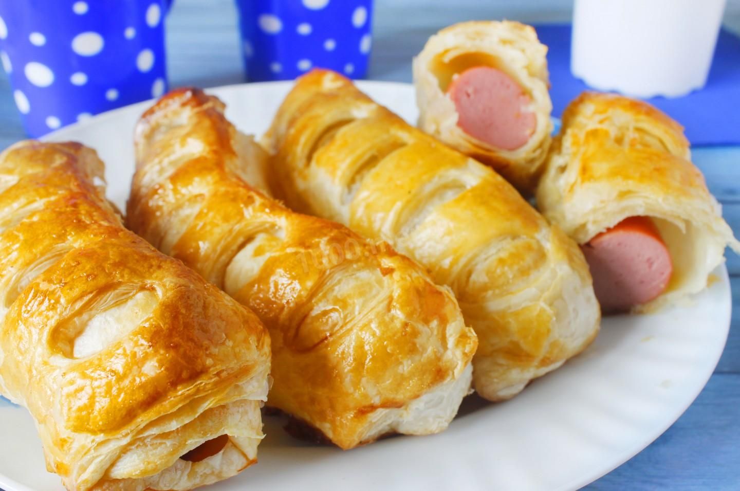 Сосиски в слоеном бездрожжевом тесте, запеченные в духовке