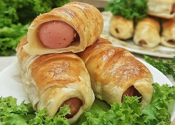 - Румяные и ароматные сосиски в слоеном бездрожжевом тесте готовы! Самое время наслаждаться вкусом приготовленного блюда!