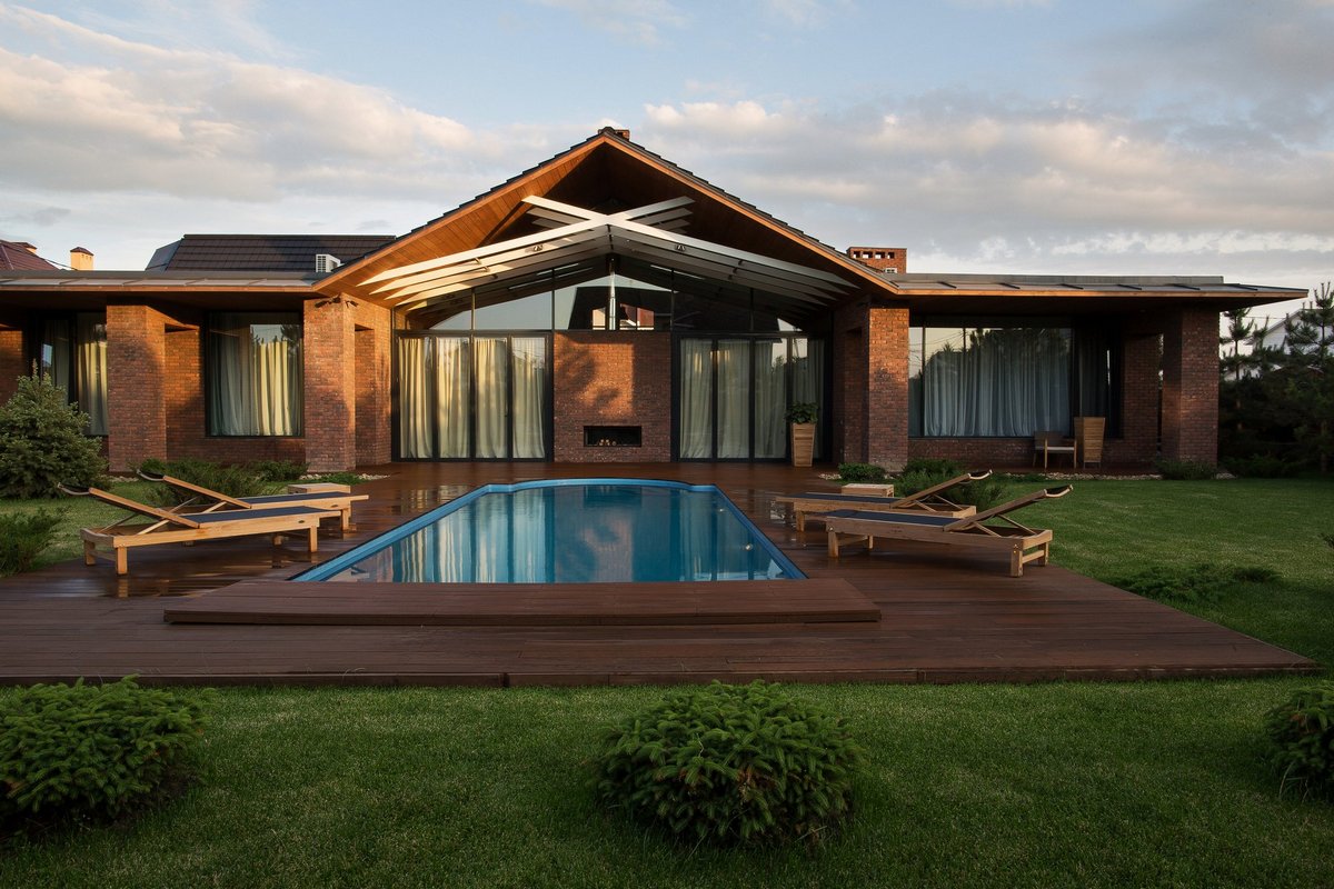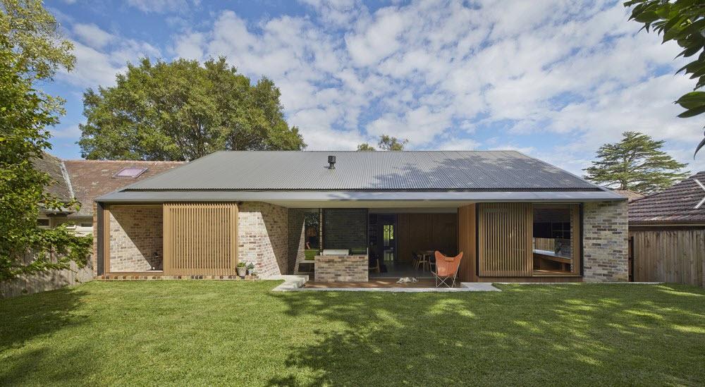 Просторная крыша, акценты на кирпичной стене, алюминий