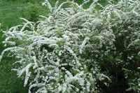 Группа весеннецветущих спирейСпирея сераяСпирея серая — сильно разветвленный куст 2 м в высотой, с войлочными ребристыми побегами. Листья спиреи серой сверху серо-зеленые, снизу они светлее, с обоих концов заострены. Белоснежные цветки спиреи серой собраны в рыхлые щитки, расположены по всему побегу. У вершины побегов соцветия сидячие, ниже — они на удлиняющихся облиственных веточках. Эта спирея цветет в мае, а в июне созревают плоды.