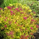 - спирея японская Голд Маунт – это спирея японская маленькая, высотой всего 25 см, с яркой желто-золотистой листвой и розовыми цветками;