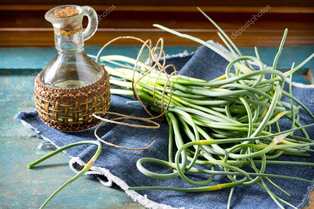 Стрелки чеснока свежие сочетают в различных блюдах с такими овощами, как кабачок, свекла, шпинат, а также мясом, сырами, яйцом. Пикантность придает стрелкам чеснока горчица и соевый соус.