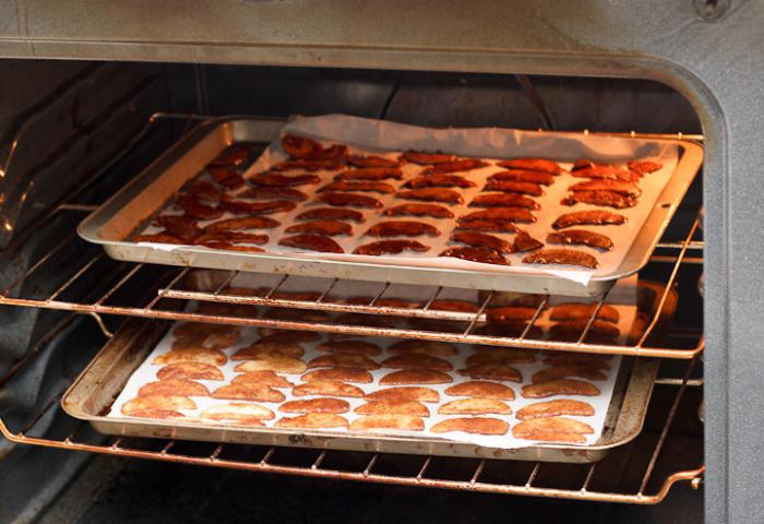Это произойдет через 4-6 часов, в зависимости от толщины кусочков и особенностей духовки. Готовые грибочки должны быть чуть гибкими. Следите за тем, чтобы они не стали слишком сухими и ломкими.