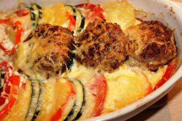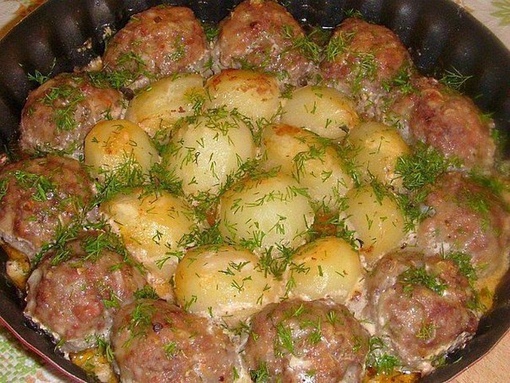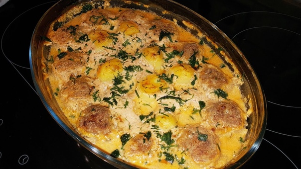 Тефтели в духовке с картошкой
