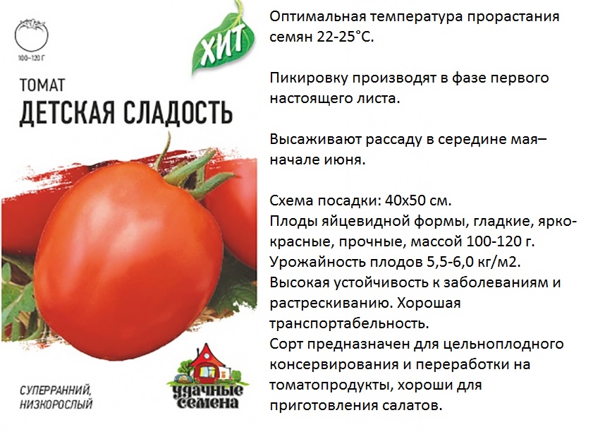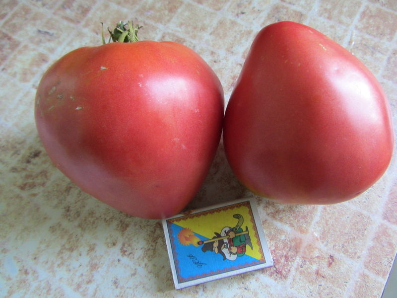 Раннеспелые плоды созревают на низкорослых кустах до 70 см, достигая массы от 400 до 800 г. Помидоры красные сердцевидной формы. Мясистая сахарная мякоть грунтовых крупноплодных томатов используется в консервации в нарезку.
