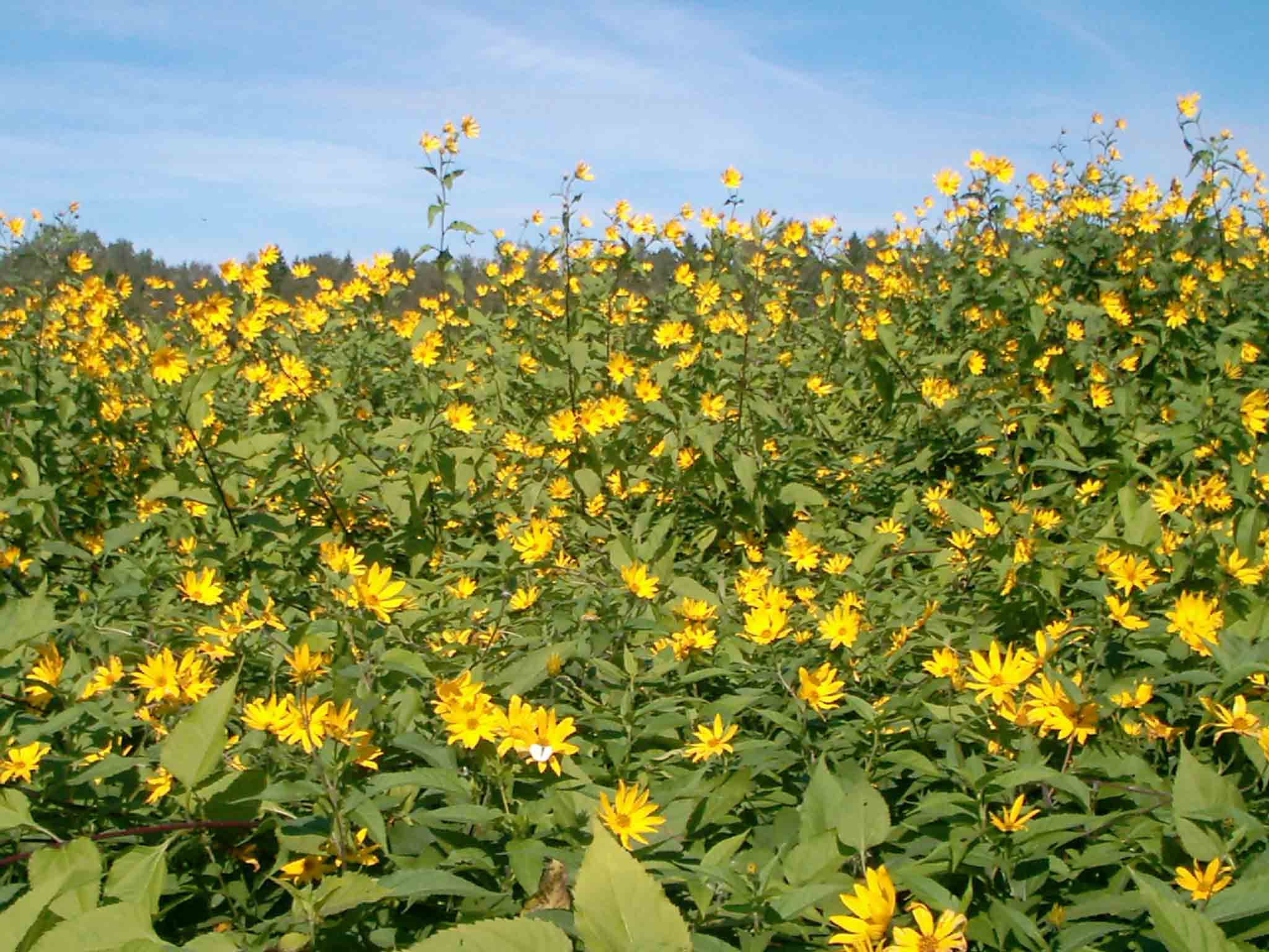 Топинамбур дают очень высокие растения и летом демонстрируют красивые ярко-желтые цветы.Это выдает тот факт, что они родственны подсолнухам.