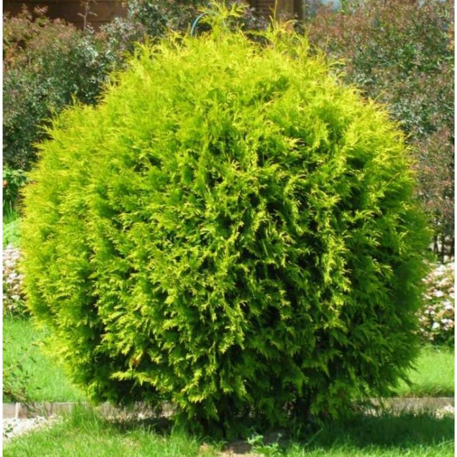 - Веточки по бокам куста небольшие. Преимущество — хвоя славится неизменным на протяжении года золотым цветом и даже зимой выделяется ярким «солнечным» пятном.