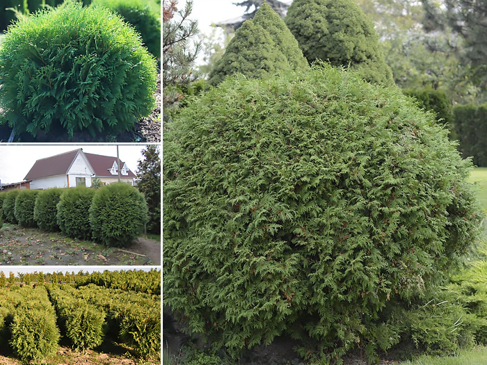 Она уместна и в цветнике, ведь благодаря компактным размерам данное растение можно комбинировать с различными декоративно-цветущими одно- и многолетниками. Удачными компаньонами для нашей героини являются можжевельник, спирея, жасмин, вероника, мускари, люпин, маргаритки, анютины глазки, манжетки, бархатцы, крокусы, тюльпаны, розы, клематис, подснежники, астильба, петуньи, гортензия, рододендрон, сирень, бадан, кандык, хосты, примула, пролесок. Включают тую также в древесно-кустарниковые, хвойные композиции, миксбордеры. Вечнозеленую красавицу можно увидеть в японском садике. Ландшафтные дизайнеры оформляют с помощью представителей данного сорта живые изгороди, аллеи; разделяют сад на зоны, высаживают хвойные «шары» по бокам садовых тропинок и вдоль границ приусадебного участка. Декоративное растение отлично вписывается в дизайн верескового и каменистого сада, великолепно смотрится на альпийской горке. Восхитительными получаются ландшафтные композиции, состоящие из шаровидной красотки и декоративно-лиственных культур.