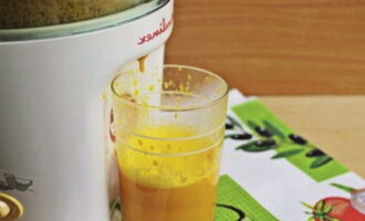 - Выжмите тыквенный и яблочный соки с помощью соковыжималки.