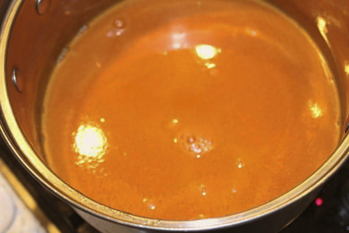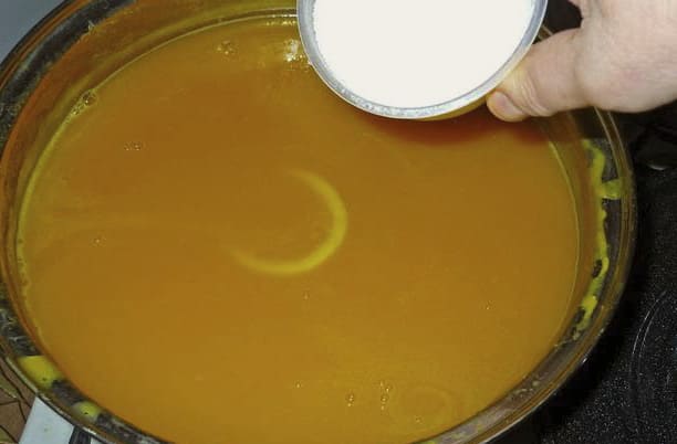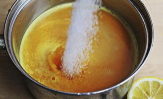- Добавьте сок тыквы, моркови и лимона, сахар, доведите до кипения и варите 10 минут на медленном огне.