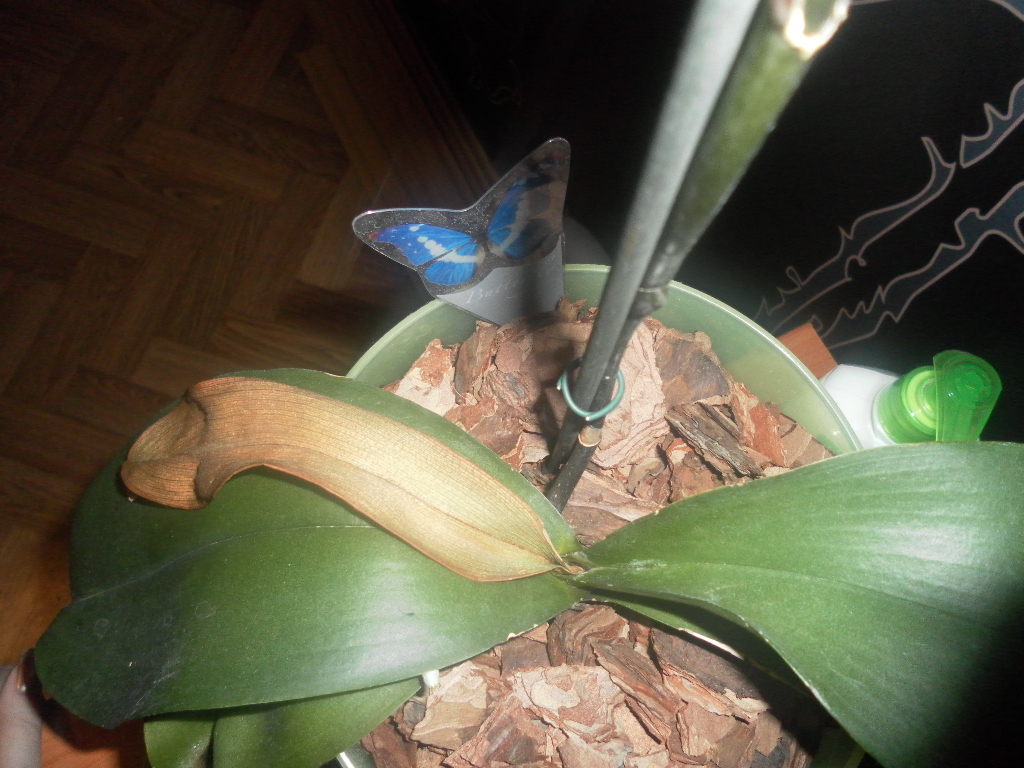 - Старый цветонос из-за недостатка питательных веществ и энергии медленно отмирает.