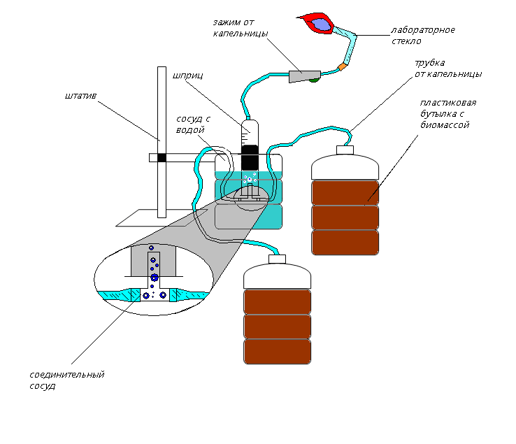 Для его отвода потребуется кусок шланга, соединенный со штуцером, и прозрачная пластиковая бутылка, заполненная водой. В нее необходимо опустить второй конец шланга. Бульканье в воде будет лучшим свидетельством того, что внутри реактора происходит сбраживание биомассы.