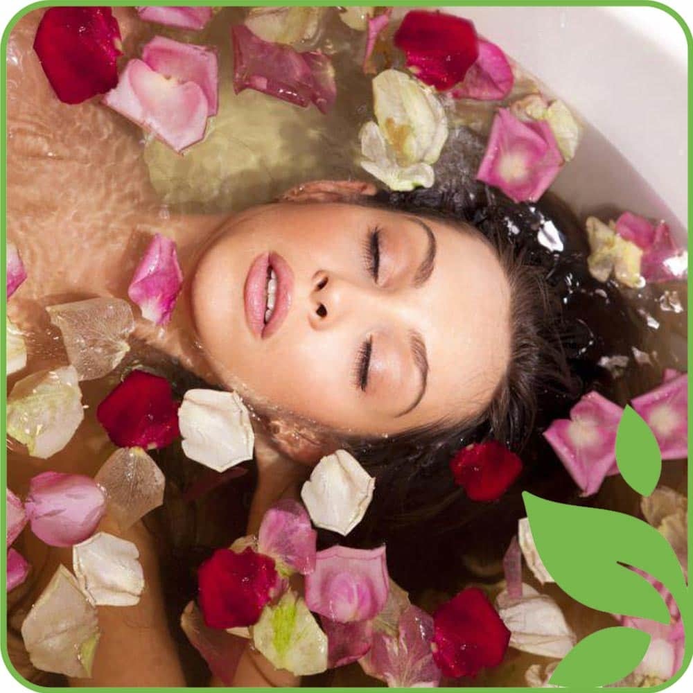 Согласно некоторым источникам, смесь морской соли, соли Эпсома и органических лепестков розы является идеальным сочетанием для успокаивающей ванны. Через несколько минут в ванне вы заметите, что ваша кожа стала намного мягче. Многие эксперты подтвердили, что органические бутоны роз, органические лепестки роз и другие части роз положительно влияют на кожу.