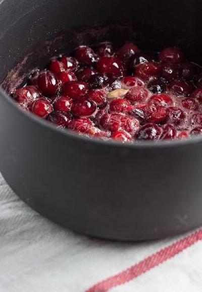 - Добавьте бруснику и 1 стакан воды в кастрюлю среднего размера