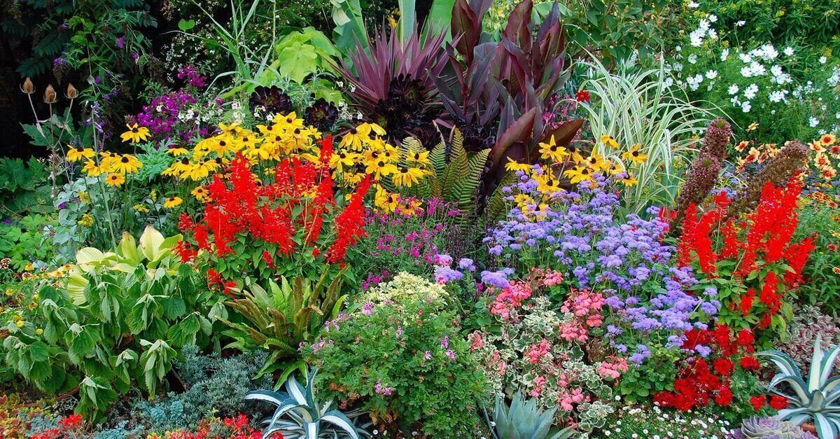 Цветники небольшого размера обычно засаживают двумя-тремя видами растений, а на просторных площадках возможно создание сложных узоров из множества разных цветов.