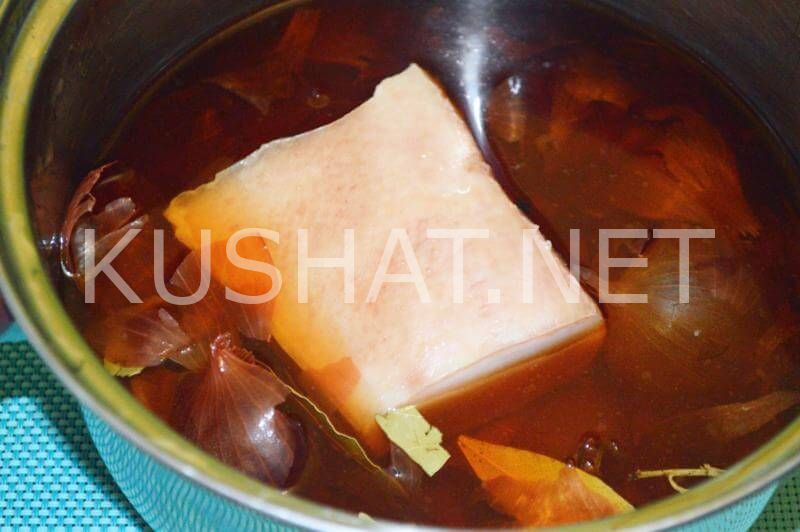 Сало варёное в луковой шелухе