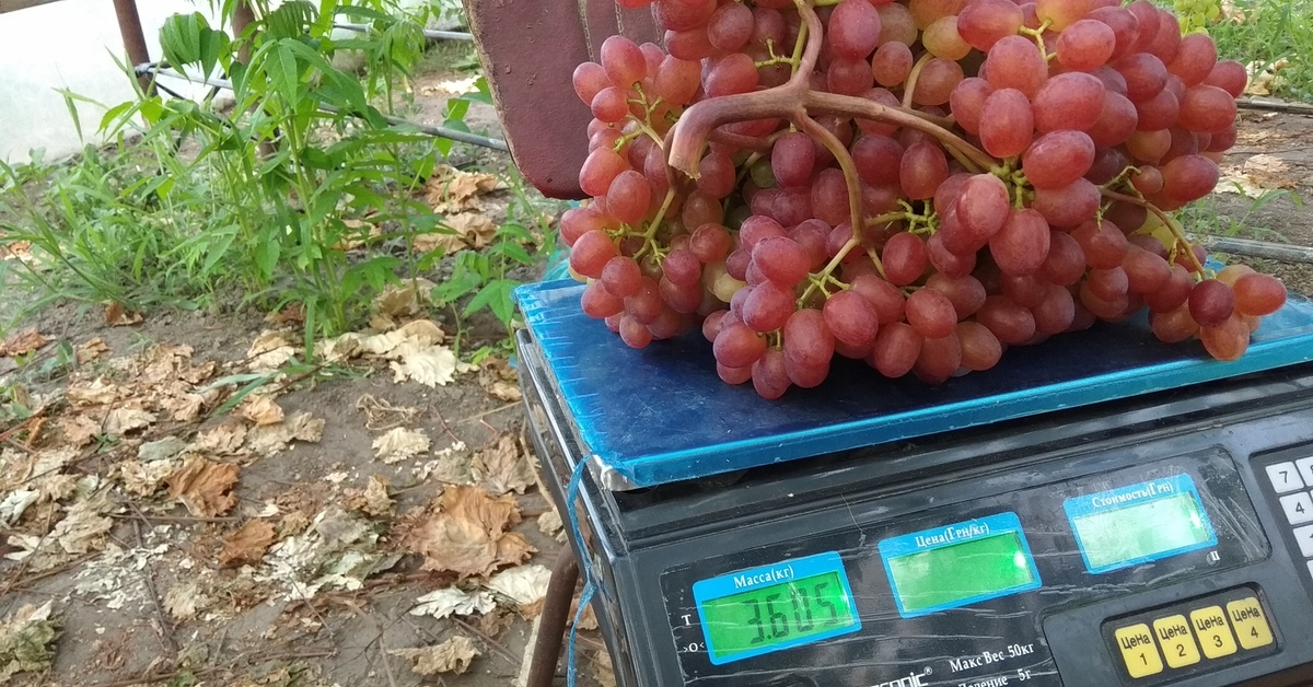 Зафиксирован максимальный вес грозди 3 кг. Такой результат получают опытные виноградари при грамотном уходе за кустом.