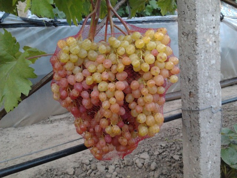Ягоды в такую погоду часто лопаются, это ухудшает товарный вид, уменьшает потребительскую ценность сорта. Вызревшие грозди можно не торопиться срезать. До 45 дней они висят на кустах, сохраняя вкус, товарный вид. При этом нужна защита от ос, они могут повреждать тонкую шкурку ягод.