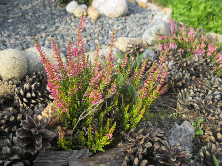 Вереск будет отлично смотреться на переднем плане клумбы, около дорожек (для формирования низких бордюров), прекрасно подходит для рокариев и альпийских горок.