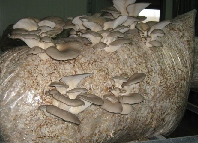 Интенсивным способом вешенки выращиваются в мешках. В них загружается субстрат, состоящий из соломы, шелухи гречки или семечек подсолнечника, либо кукурузных початков.