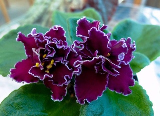 - Saintpaulia ‘Chimera Monique’ — цветки этого сорта имеют сиреневые лепестки с белой каймой.