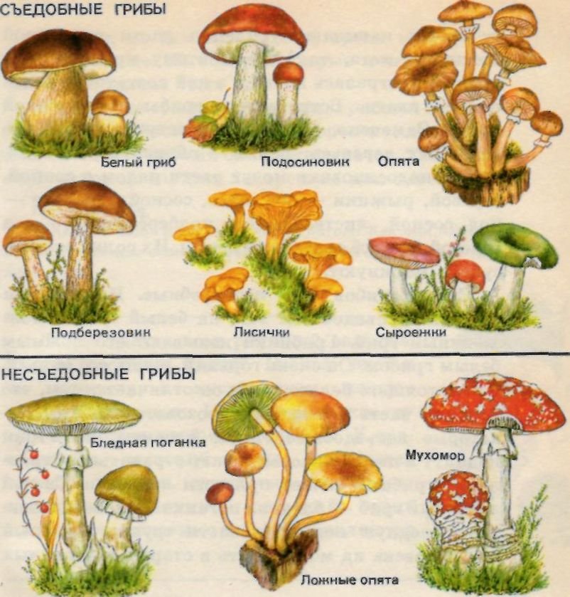 Из 200 видов съедобных грибов в пищу обычно употребляется лишь несколько десятков хорошо известных – белые, подберезовики, подосиновики, маслята, опята и др.