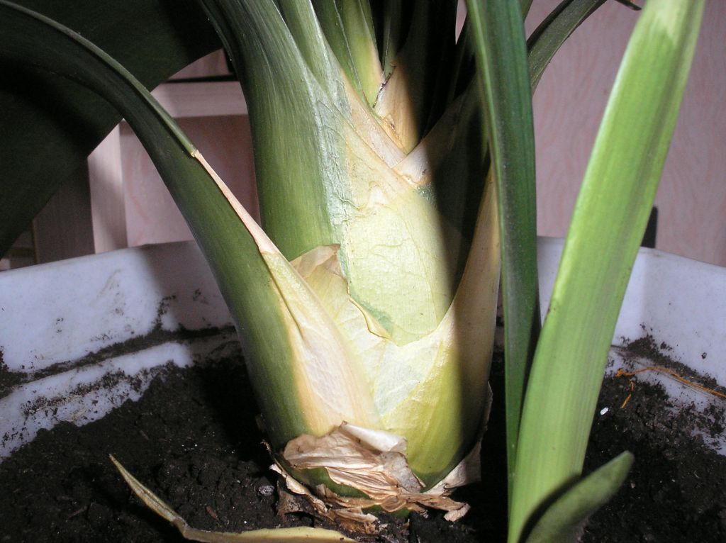 Молодые растения пересаживают ежегодно, а у старых только меняют верхний слой разрыхлённой земли. При посадке в новую ёмкость, слой земли не должен закрывать основания листьев. Постоянная сырость в этом месте приведёт к загниванию.