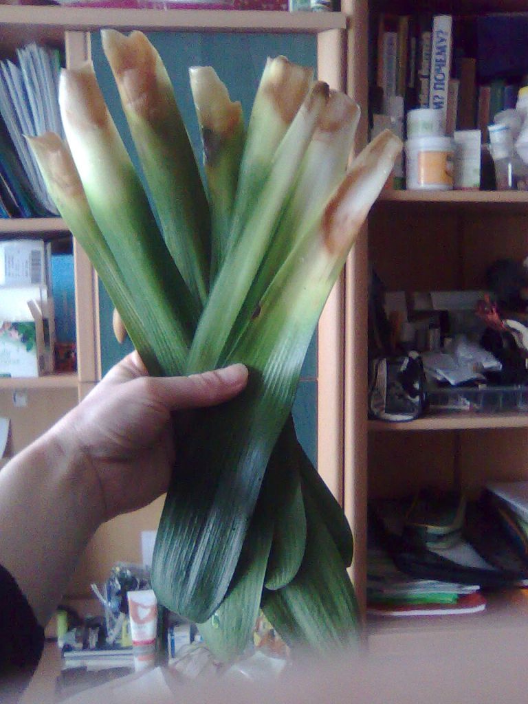 Листья растения образуют прикорневую розетку и расположены в форме веера. Форма листовой пластины бывает двух видов: линейная и мечевидная.