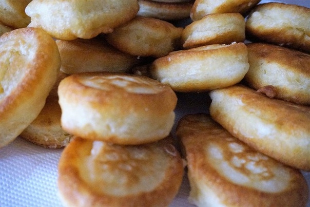 3. Аккуратно ложечкой не торопясь, чтобы каждый маленький блинчик получился похожим на предыдущий пожарьте на сковороде. При это сначала ее раскалите, а потом убавьте на средний огонь. Обжаривание производите на подсолнечном масле.