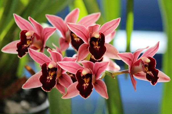 Цимбидиум имеет высокие стебли с множеством цветков, которые имеют более типичную форму орхидеи.Их легко узнать по травянистым листьям, и они легко образуют большие скопления. Наиболее распространены сорта с прохладным цветением, которым необходима более прохладная зима (ночи в 40-е в течение некоторого времени осенью), чтобы начать цветение. Когда цветы раскроются, они могут сохраняться до двух месяцев и более, особенно в прохладной среде. Это очень эффектные и полезные растения, и растение в шестидюймовом горшке может иметь три стебля с 15 или более цветками на каждом, в зависимости от типа.