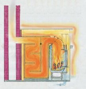 Для повышения КПД устройство оснащено трехходовым газоходом.