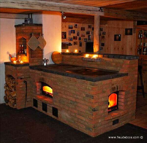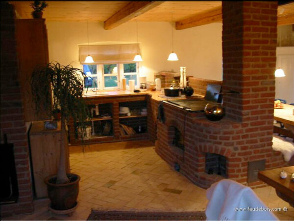 Кирпичная каменка и каменка от feudebois во Франции.com. Глиняный кирпич и керамическая плитка лучше всего переносят термическую нагрузку.