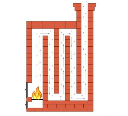 Настоящий мастер так сложит вам дымооборотный канал, что прогрев будет на всю высоту печи. В этом случае КПД повысится до 80%Ещё один недостаток – в массивности устройства. Но зато здесь можно соорудить лежак, на котором так приятно прогреться после прохладного дня. Чтобы приготовить или разогреть обед, нужно наловчиться работать ухватом и обзавестись специальной посудой.